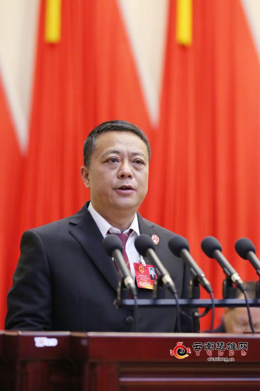 州中级人民法院院长马俊杰作楚雄彝族自治州中级人民法院工作报告。(记者 王洪 摄)