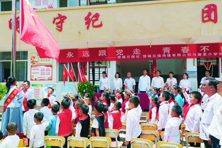活动中,举行了庄严的升国旗仪式,报社职工为唐家小学全体师生讲述革命先烈故事,开展“感党恩跟党走,做党的接班人”主题讲座,教育引导学生坚定理想信念,传承红色基因;带领学生齐声诵读爱国诗词,合唱爱国爱党歌曲,培养学生从小树立爱党、爱国、爱社会主义情感,激发奋进的勇气和力量。