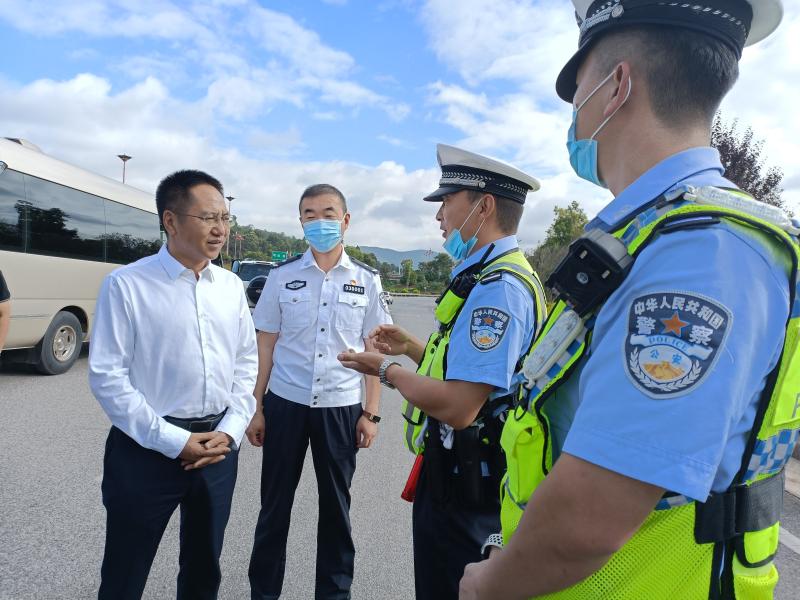 来到州公安局指挥中心,张文旺在听取国庆安保情况汇报和对部分执勤点进行视频调度后,充分肯定全州道路交通安全工作,并提出明确要求。他指出,道路交通安全事关人民群众生命财产保障,事关经济社会高质量发展。要坚持人民至上、生命至上,深入推进全国市域社会治理现代化试点工作,建设更高水平的平安楚雄,全力守护好“长安杯”。要深入开展党史学习教育,大力弘扬伟大建党精神,着力打造一支政治过硬、本领高强、作风优良、纪律严明的新时代公安队伍。