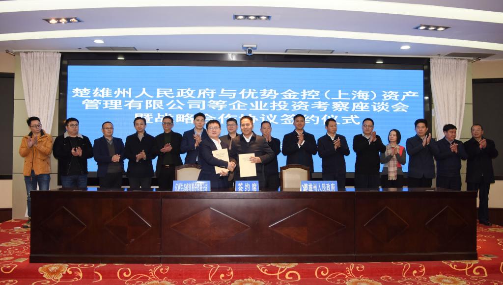 2月21日至24日,优势金控(上海)资产管理有限公司董事长吴克忠及相关企业负责人一行,到楚雄州开展投资考察活动,并于22日上午举行投资座谈会暨合作协议签约仪式。