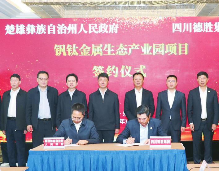 州人民政府与四川德胜集团就云南德胜钢铁有限公司转型升级改造钒钛金属生态产业园项目进行签约。