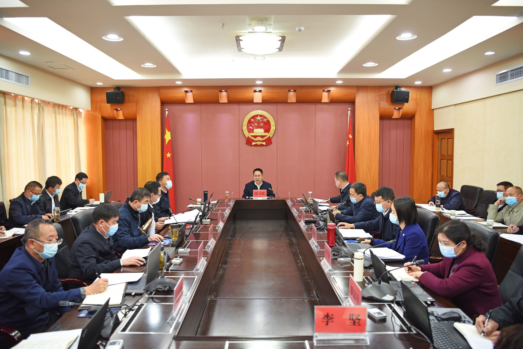 4月8日,州长张文旺主持召开十三届州人民政府第5次常务会议,听取全州“三调”工作情况汇报,研究污染防治攻坚战成效考核、政银企合作、高速公路项目建设等工作,审议通过《楚雄州深化作风革命效能革命推动项目落地十六条措施》《突发环境事件应急预案》《楚雄州各类开发区优化提升实施方案》《州委民族工作会议暨楚雄州第八次民族团结进步表彰大会方案》。