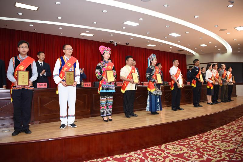 与会领导向楚雄州民族团结进步模范个人代表颁发荣誉证。