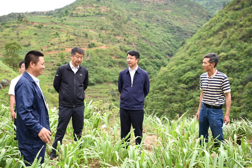 州委书记刘勇在楚雄市三街镇上新房村委会星和养殖专业合作社调研种草养牛产业发展情况。