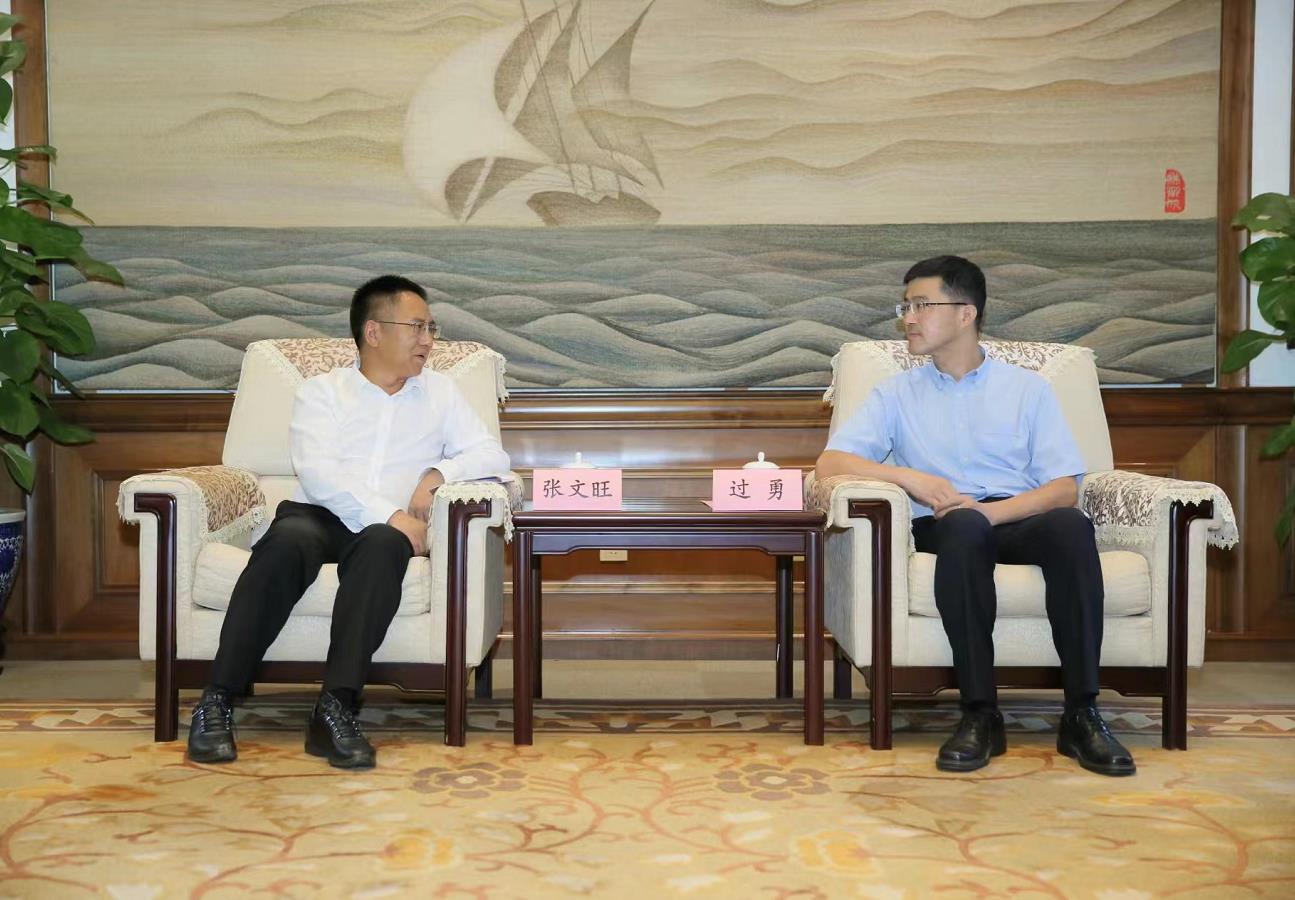 州委副书记、州长张文旺与清华大学党委副书记过勇交流洽谈。