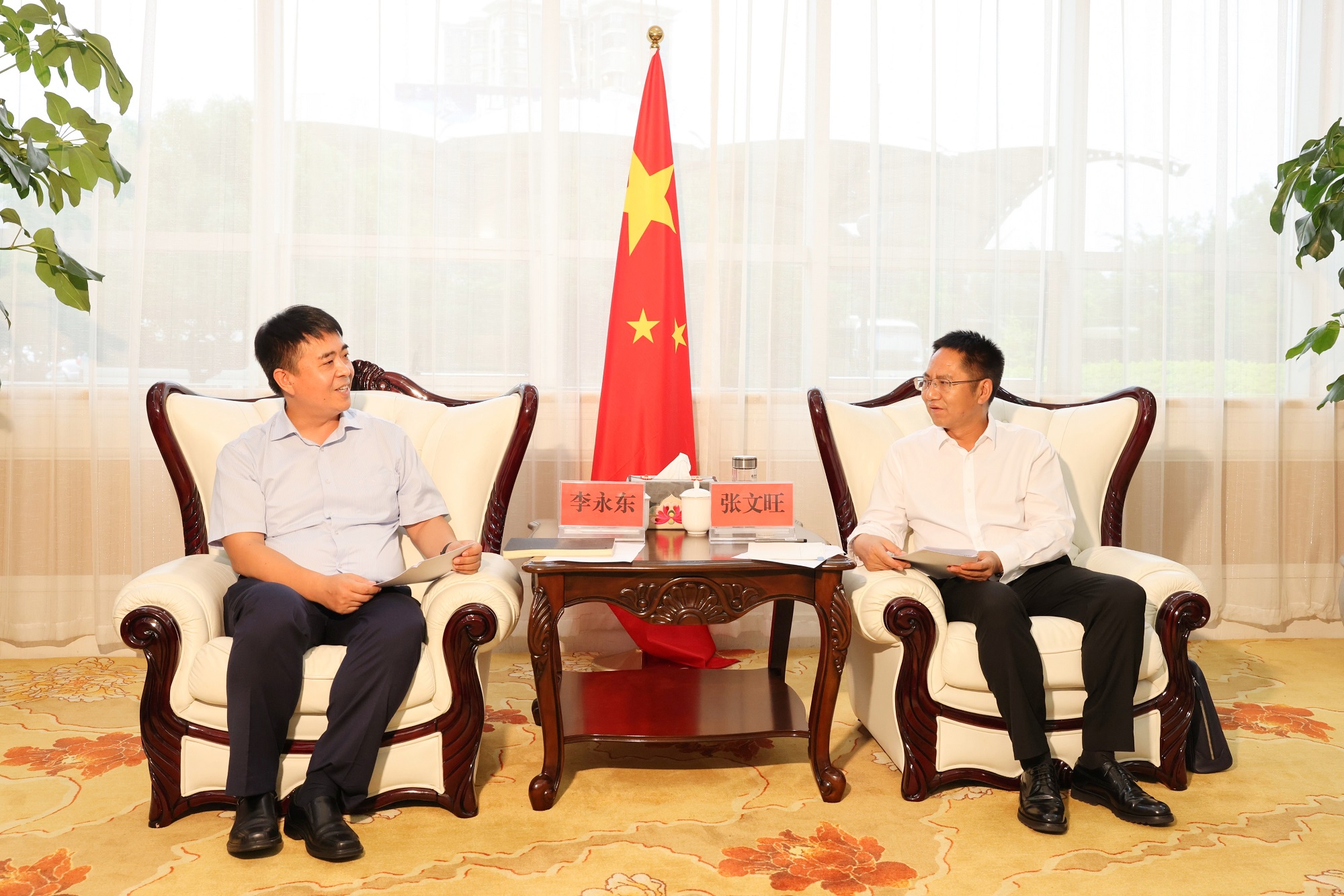 州委副书记、州长张文旺与宝武特种冶金有限公司副总经理、宝武钛业有限公司总经理李永东会谈。