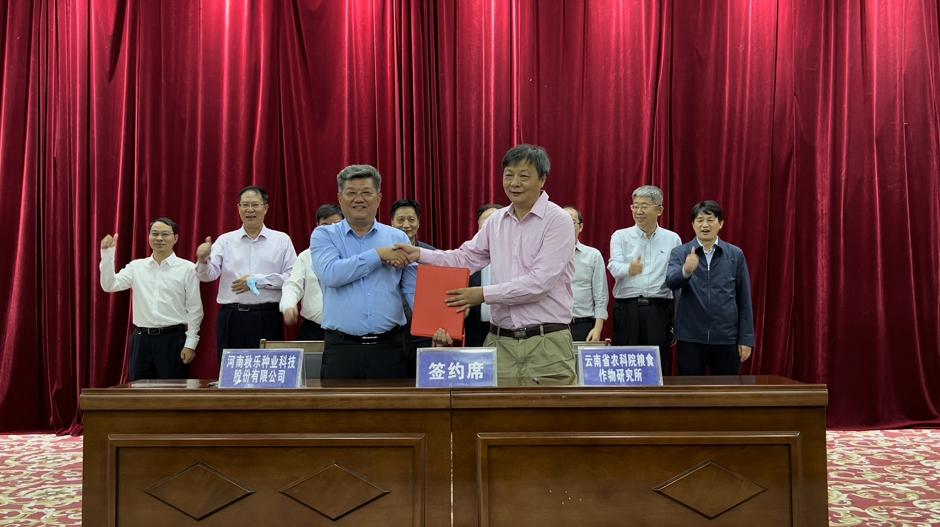 农业部专家组成员、中国农业科学院作物科学研究所研究员李少昆公布玉米示范区测产结果。测产专家组按照农业农村部玉米测产相关标准,对“云瑞408”示范区进行实收测产,平均单产每亩829.61公斤;河南秋乐种业科技股份有限公司与云南省农业科学院粮食作物研究所签订了战略合作协议。
