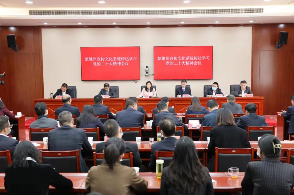 楚雄州宣传文化系统传达学习党的二十大精神会议。(记者 夏天彧 摄)