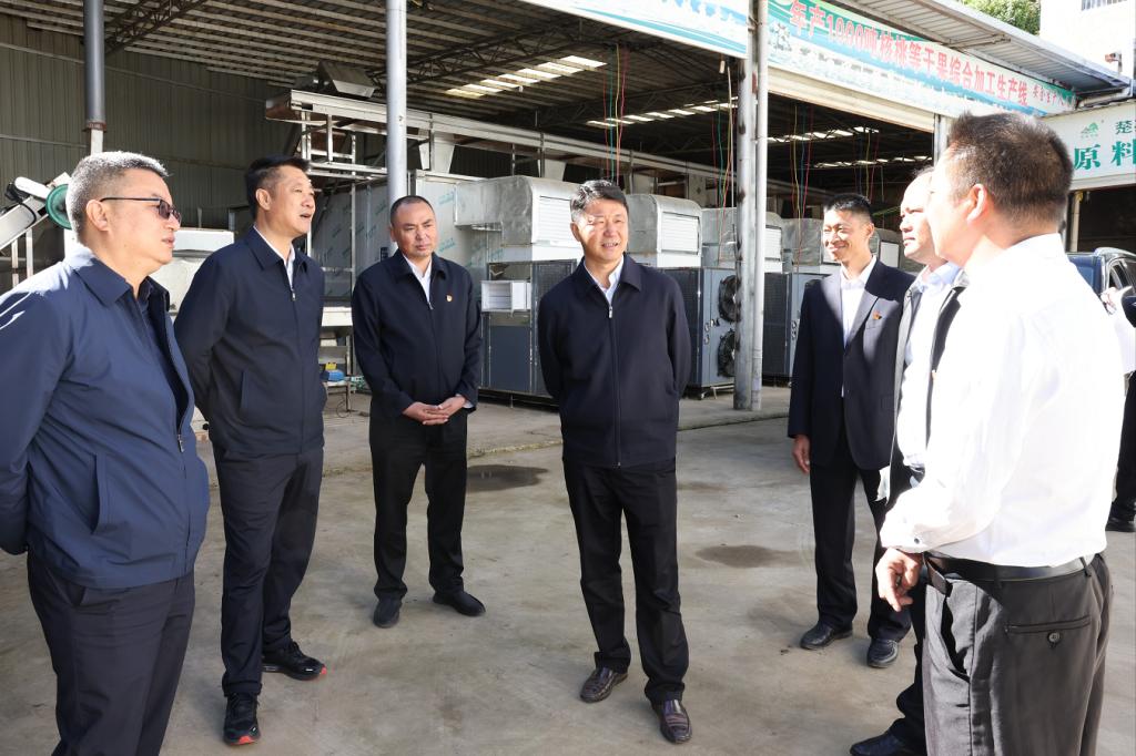 州委书记刘勇等领导在楚雄市中山镇草介核桃专业合作社调研产业发展情况。