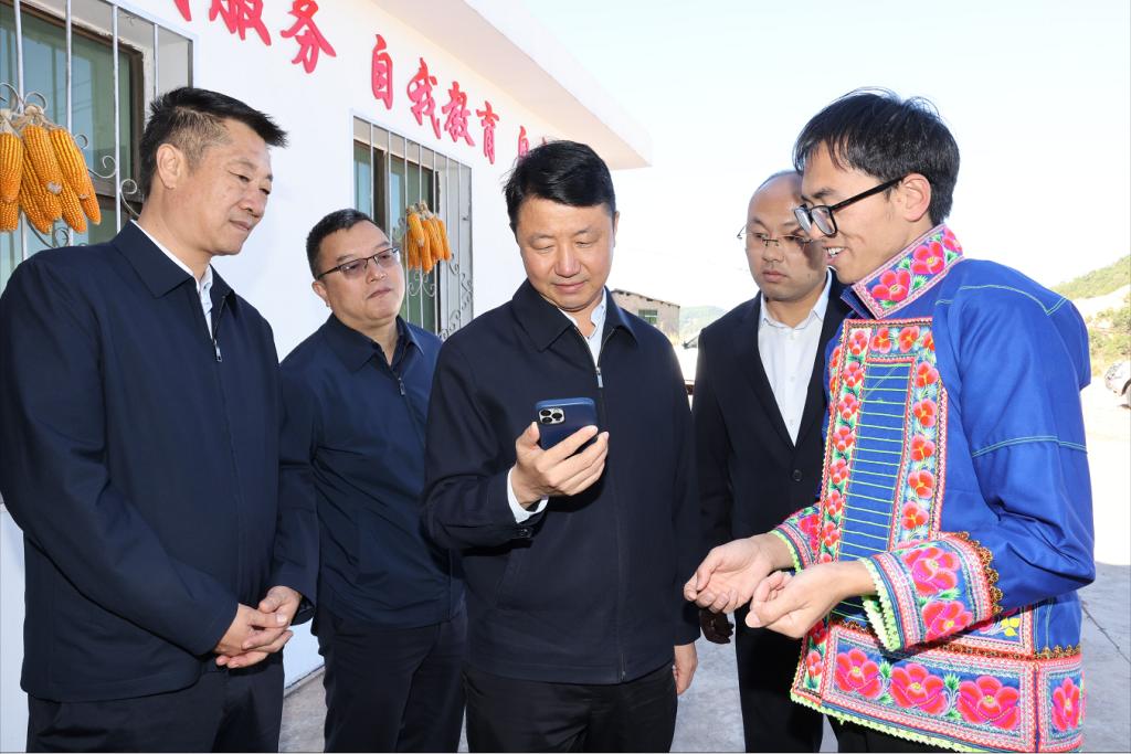 州委书记刘勇等领导在楚雄市调研巩固拓展脱贫攻坚成果同乡村振兴有效衔接和互联网农产品出村进城示范点建设情况。