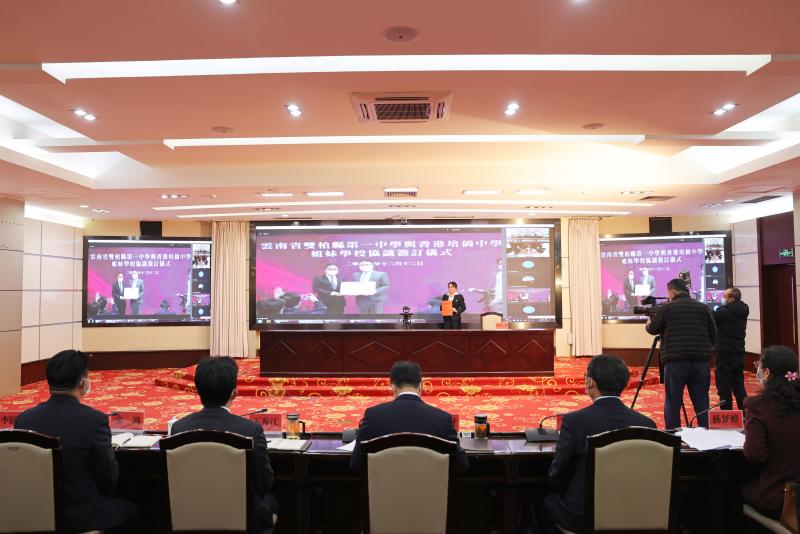 12月12日,在南京大学的积极推动下,香港培侨中学与双柏一中缔结姊妹学校签约仪式通过视频方式在香港、南京和楚雄同步举行。南京大学党委书记谭铁牛、楚雄州委书记刘勇以视频方式出席,并共同见证签约。