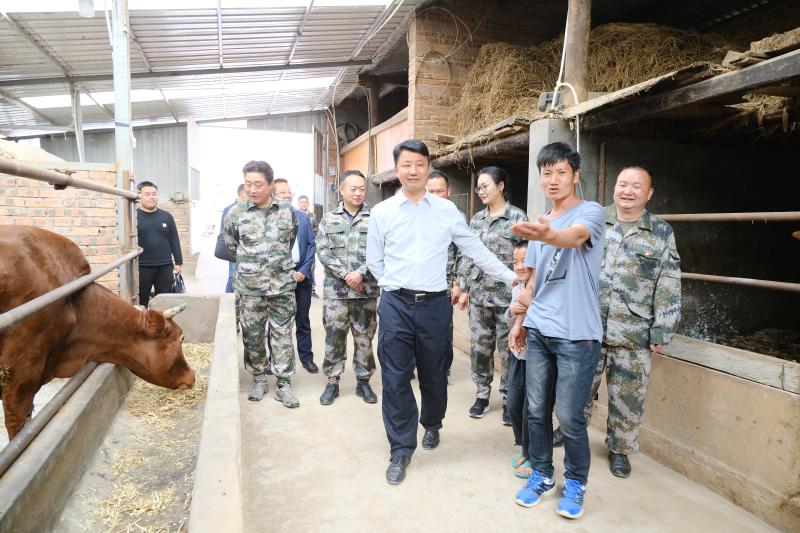 州委书记刘勇在双柏县(石咢)嘉镇密架村委会老龙村民小组调研群众肉牛养殖产业情况。