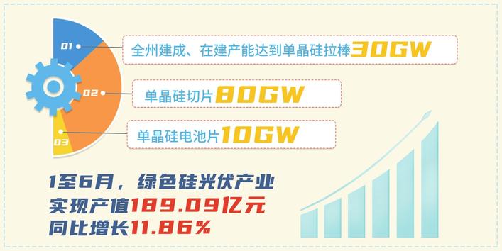 追“光”逐梦,日新月异。近年来,楚雄州主动服务和融入国家及省发展战略,聚焦绿色能源与绿色制造融合发展,绿色硅光伏产业发展势头强劲。截至目前,全州建成、在建产能达到单晶硅拉棒30GW、单晶硅切片80GW、单晶硅电池片10GW,2022年实现产值407.1亿元。今年1至6月,绿色硅光伏产业实现产值189.09亿元,同比增长11.86%,绿色硅光伏产业已成为推动全州经济高质量跨越式发展的“一号产业”。