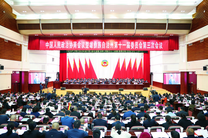 1月30日下午,中国人民政治协商会议楚雄彝族自治州第十一届委员会第三次会议在州会务中心民族会堂隆重开幕。
