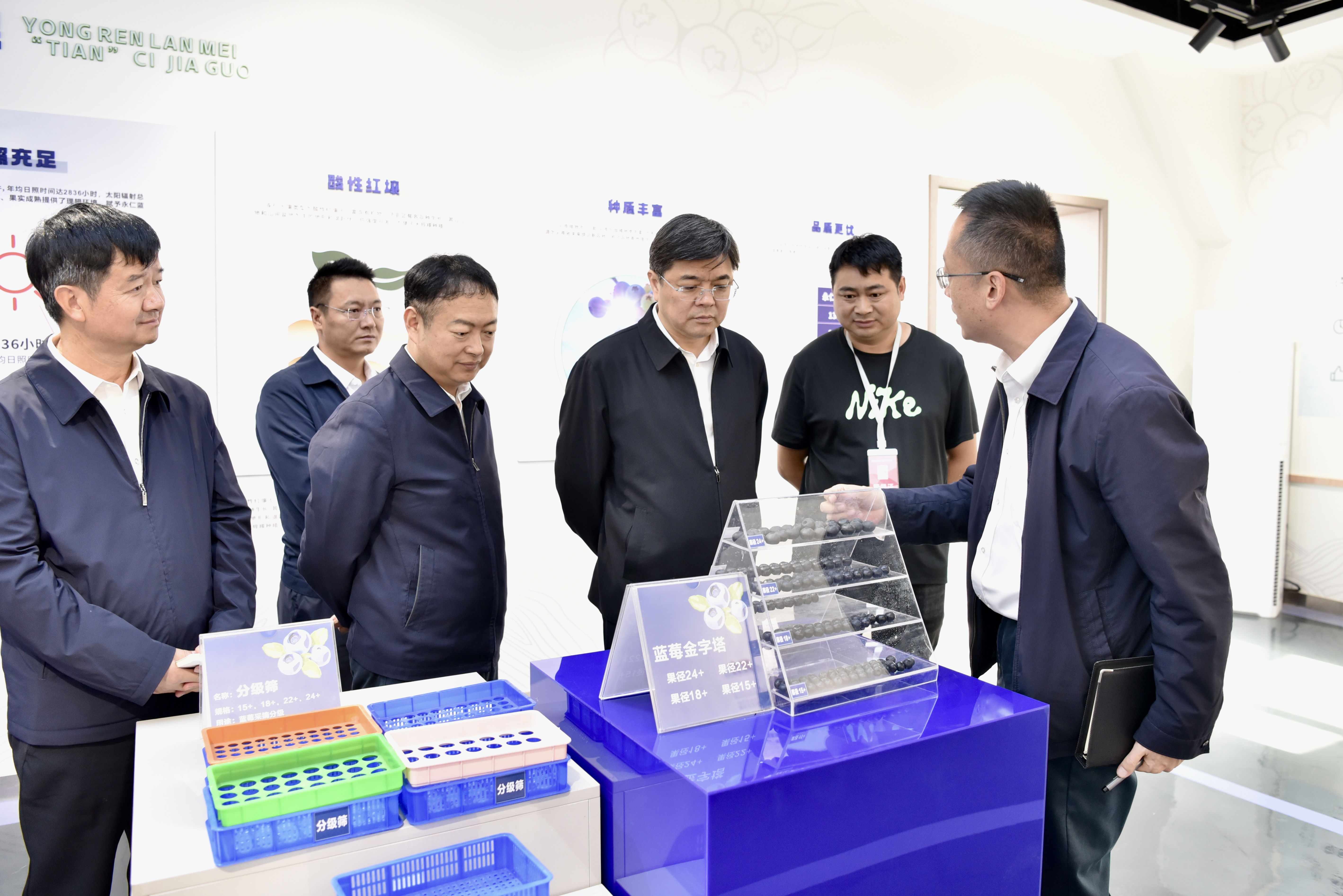 州委书记张子建在位于永仁县莲池乡莲池村坝高村民小组的幸福源数字蓝莓产业园调研。记者 杨臻 摄