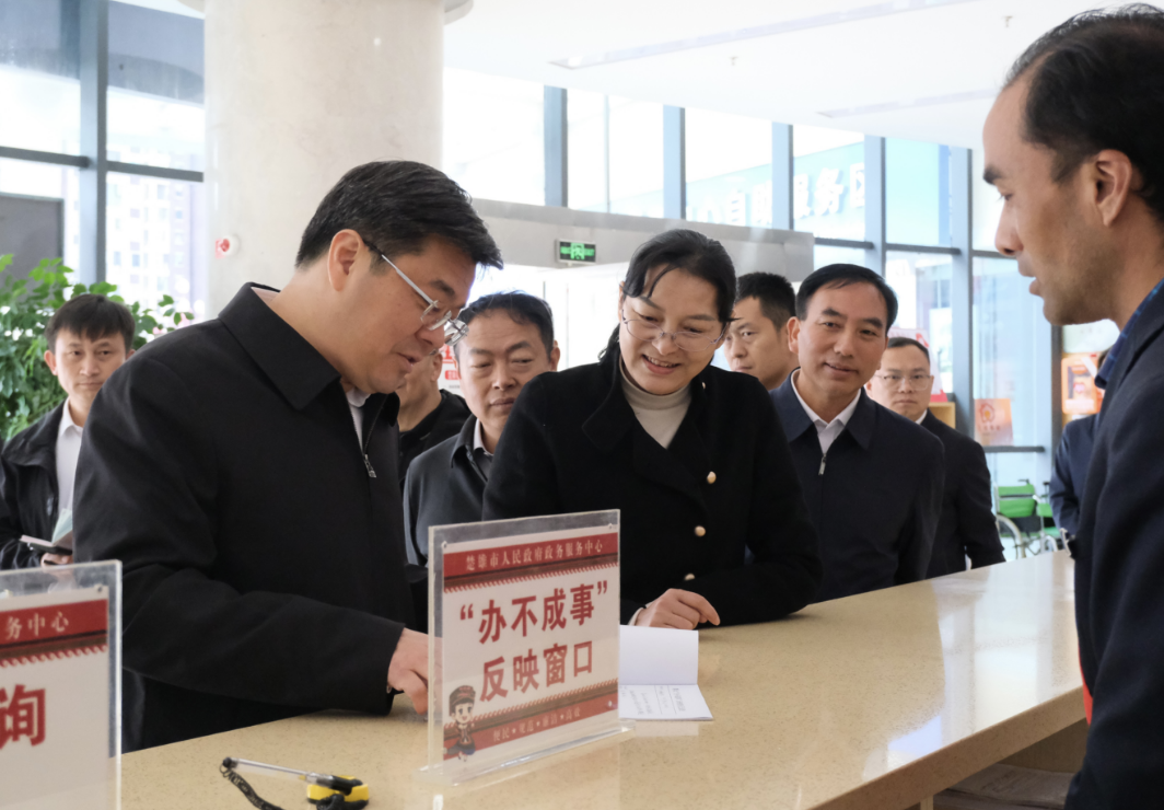 11月21日上午,州委书记张子建带队调研全州城乡规划工作及楚雄市中心城区城市规划建设管理工作,并以“四不两直”方式到楚雄市政务服务中心对窗口服务工作进行督导检查。他强调,要全面贯彻新发展理念,构建新发展格局,可持续高质量统筹城乡规划建设,更加注重提升城市内涵品质,不断提高政务服务水平,以群众满意度检验政务服务温度。