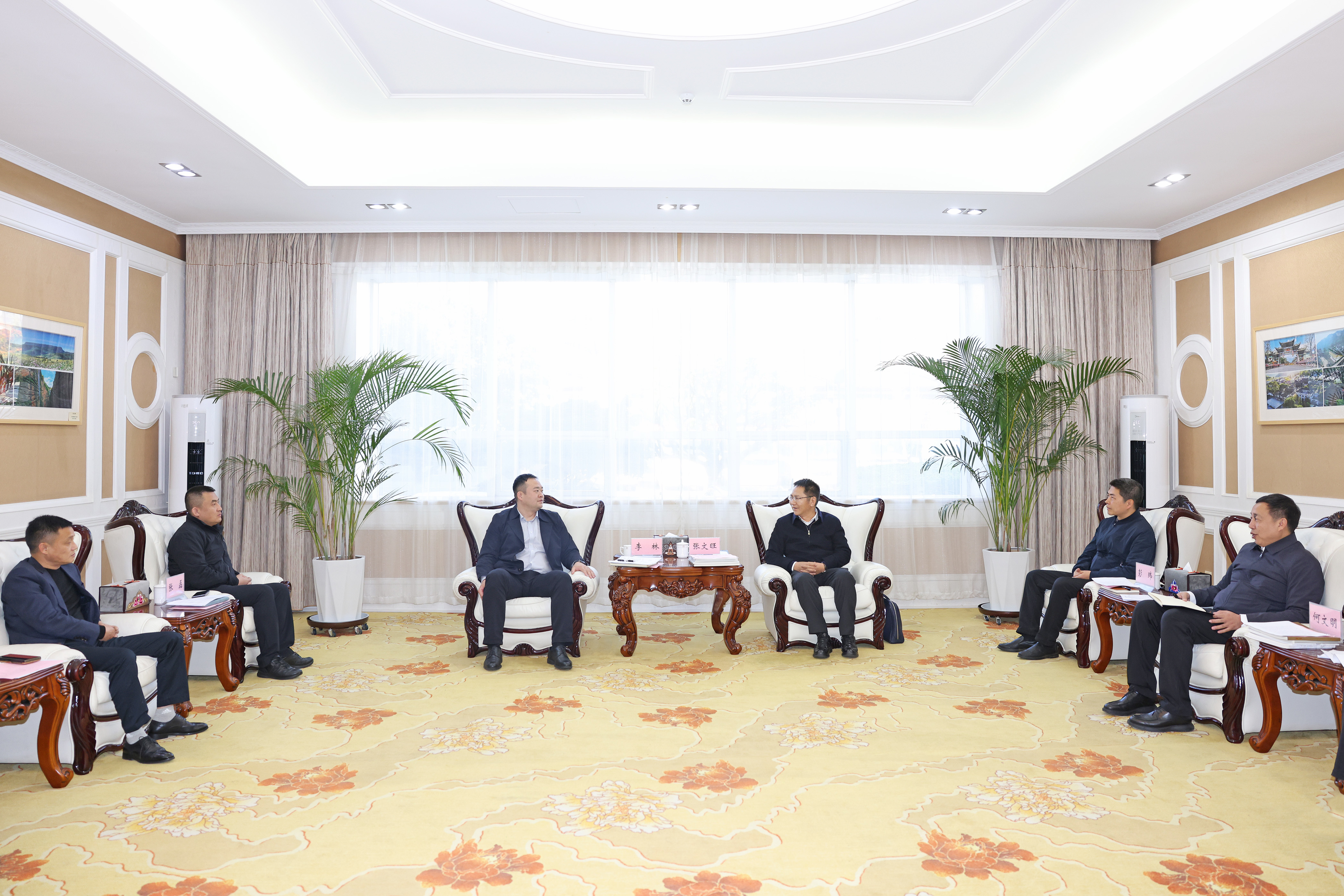 州委副书记、州长张文旺与中建一局集团有限公司西南分局副局长李林一行开展工作座谈。记者 夏天彧 摄