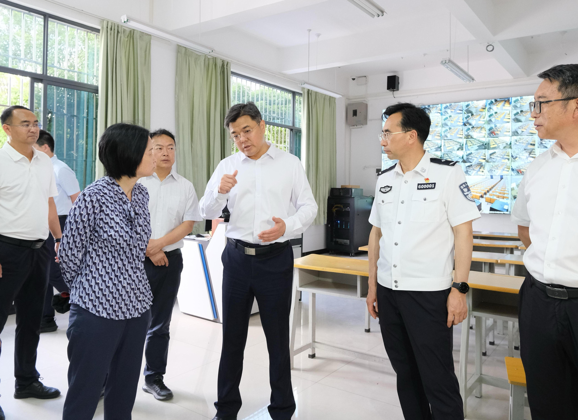 张子建在紫溪中学考点视频监控中心督导检查高考相关工作。