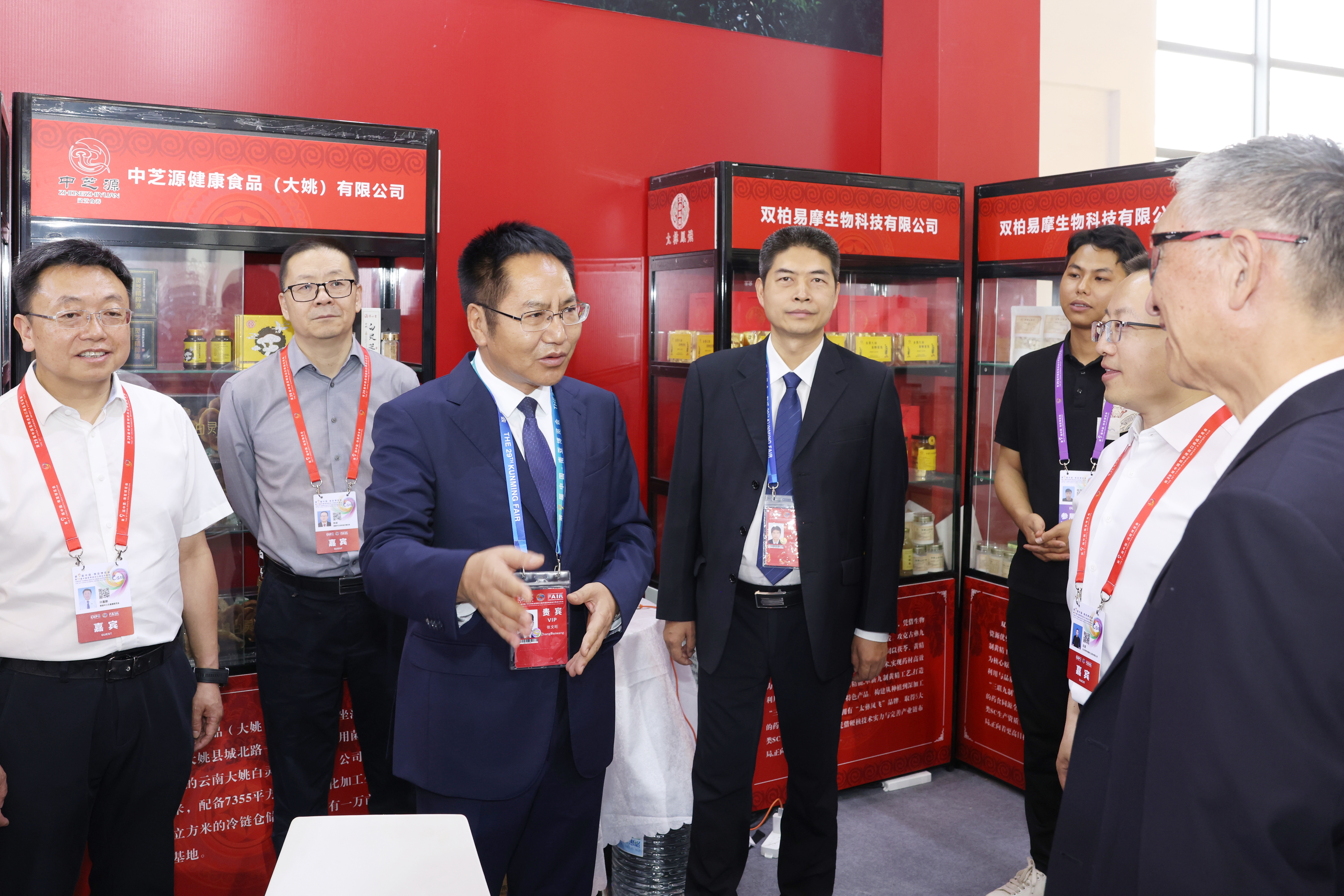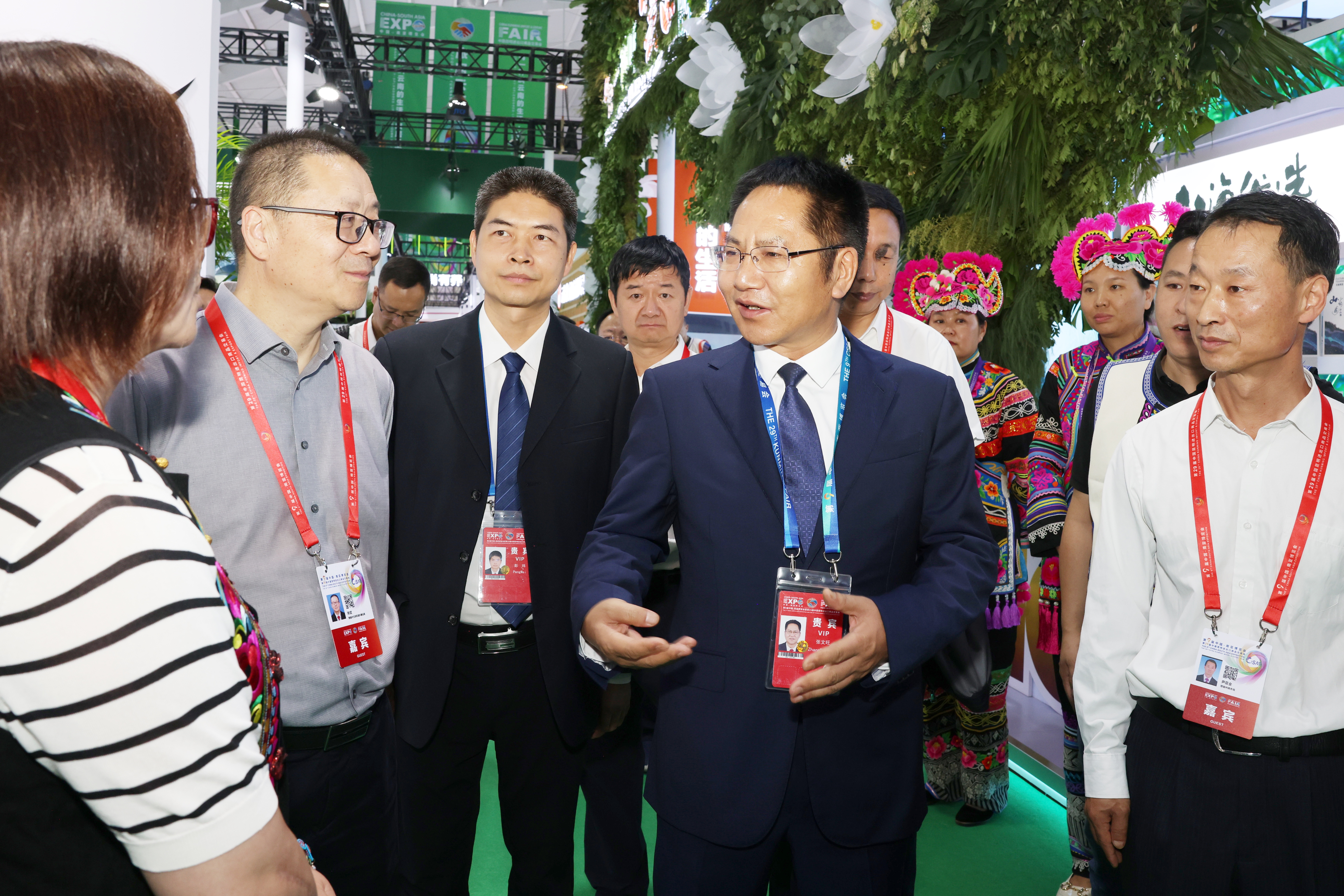 州委副书记、州长张文旺在第9届南博会医疗体育康养馆楚雄展区观摩。记者 王洪 摄