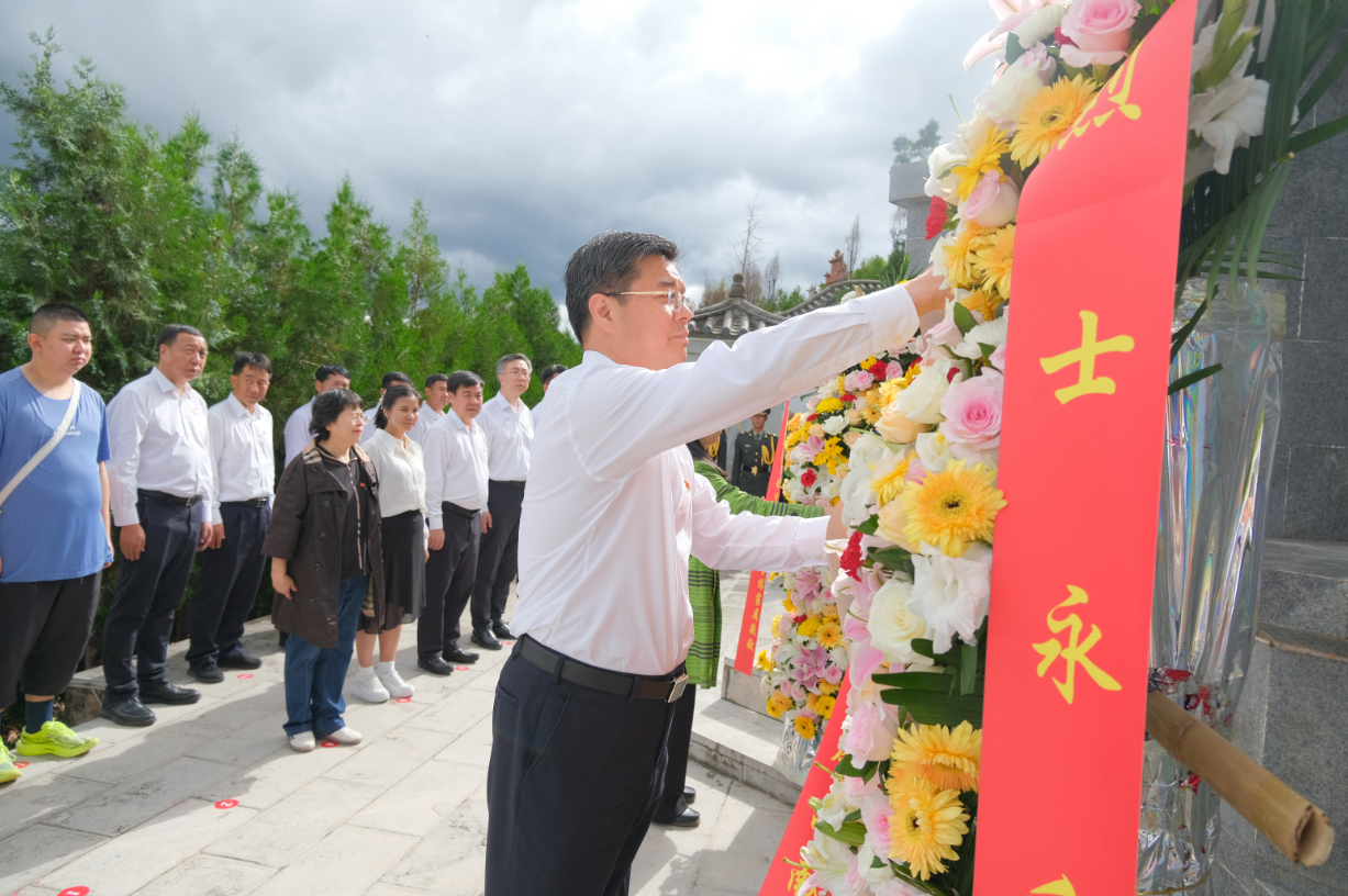 在赵祚传烈士陵园,全体人员怀着崇敬之情举行纪念缅怀仪式。仪式由州委副书记、州长张文旺主持。礼兵护送花篮缓缓走向烈士纪念碑,张子建代表州委常委班子深情整理花篮缎带,表达对先烈的深切哀思。全体人员肃立默哀,共同重温入党誓词。