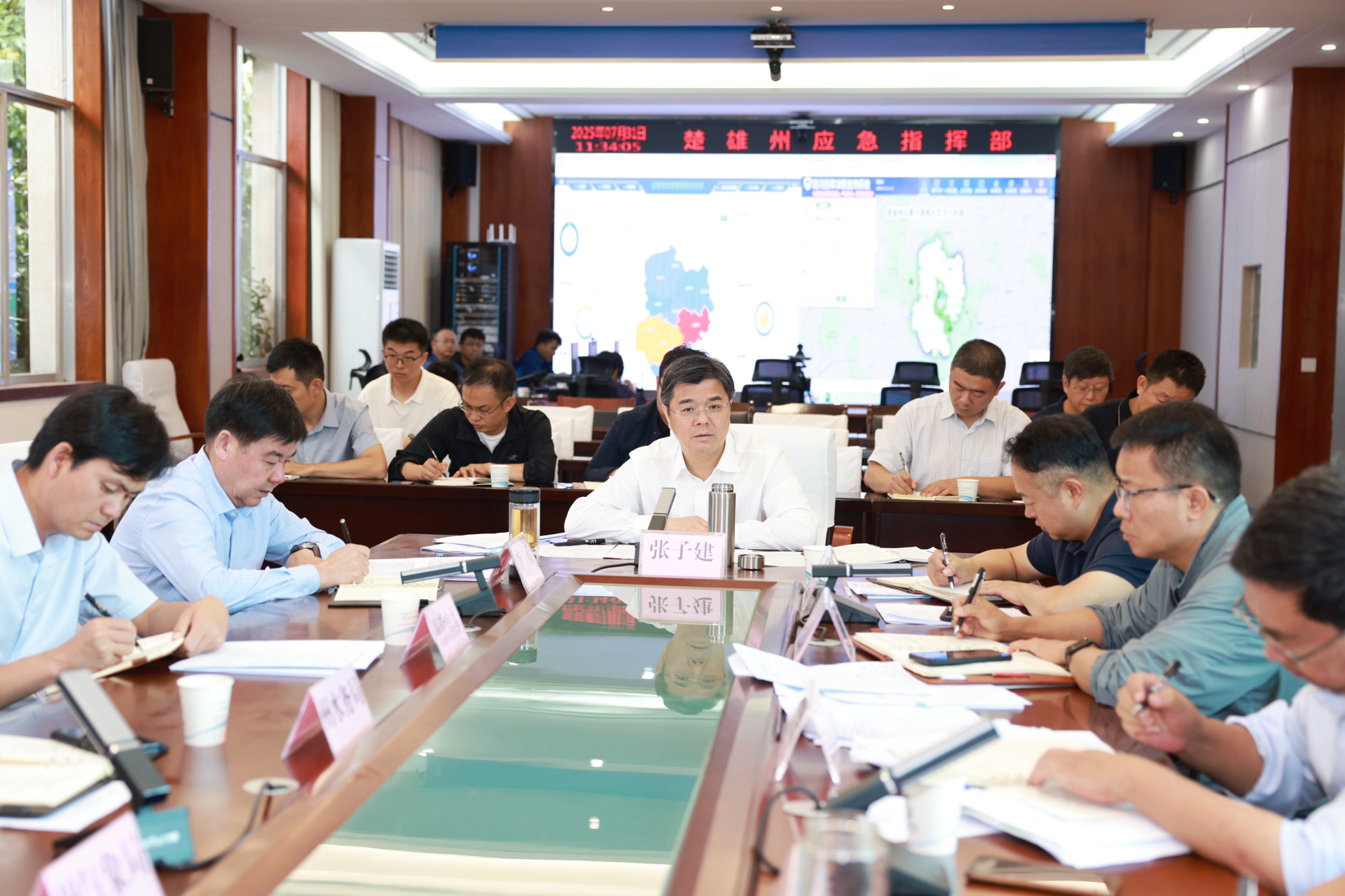 张子建强调,要强化工作责任,把防汛作为当前头等大事,党政“一把手”必须亲自抓、亲自部署、亲自落实,各级各部门迅速行动,进一步压紧压实各自责任。要强化工作重点,坚持对标对表,全面落实“1262”机制,盯紧地质灾害隐患点、水库、堤坝、道路、矿山、景区等重点地段,密切关注重点时段、重点区域、重点人群,加强监测和隐患排查。要强化工作要求,坚持信息精准、情况精准、问题精准、责任精准,做到及时预警、及时预报、及时沟通、及时处置、及时指导,实现行业、区域、排查、整治、责任“五个全覆盖”,确保指挥有力、调度有力、督导有力、运行有力。要强化工作纪律,严格值班值守,切实到岗到位,坚持一线督查、从严问责,杜绝责任“空挡”。要强化工作底线,把各项防汛措施落实落细落到位,尽最大努力减少因灾造成的损失,坚决守住人民群众生命财产安全底线。