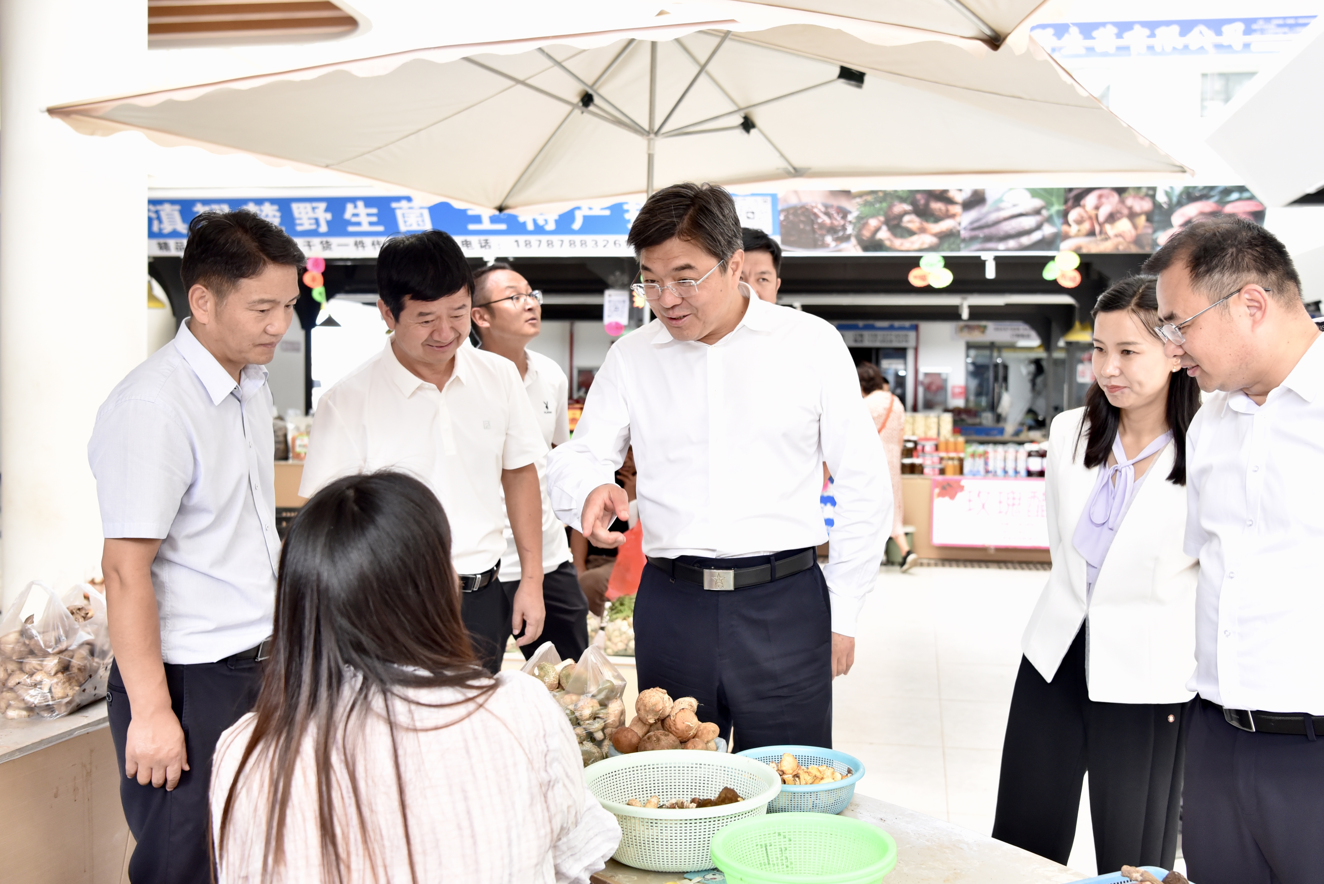 州委书记张子建在中国·南华国际野生菌交易中心调研。