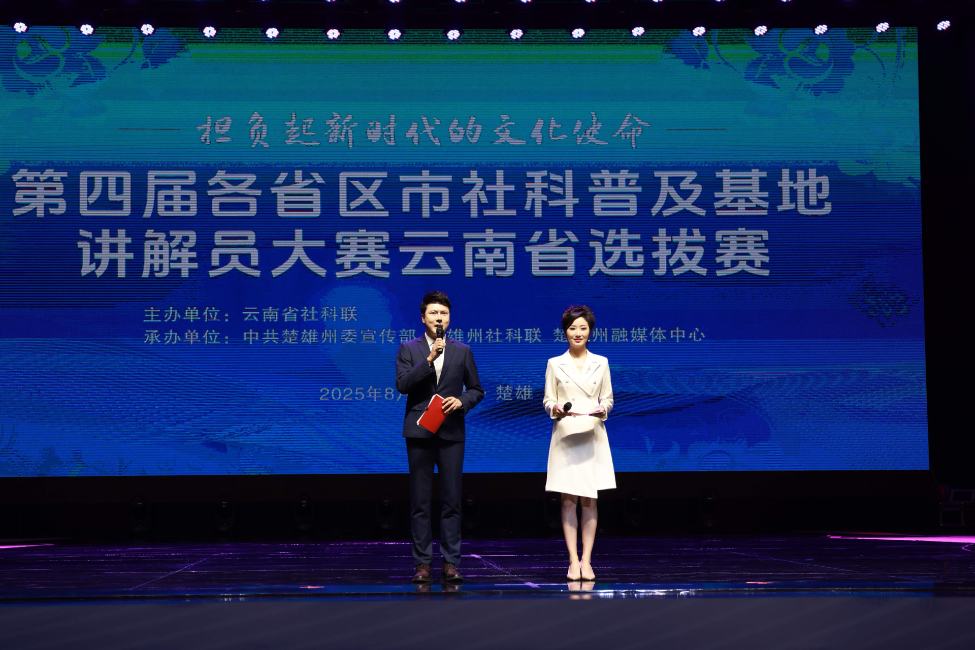 8月14日,第四届各省区市社科普及基地讲解员大赛云南省选拔赛复赛在州融媒体中心演播大厅开赛。