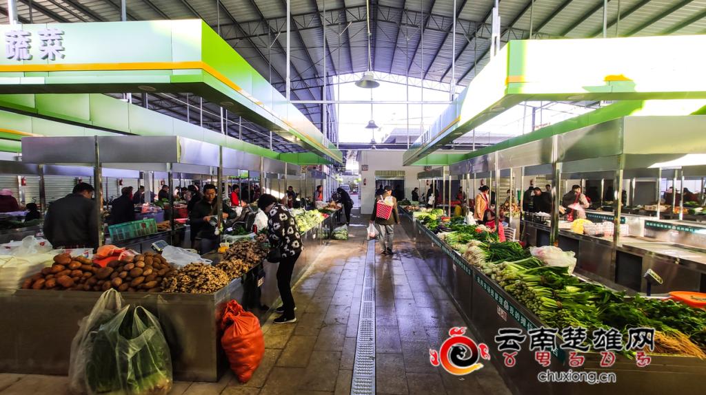 时下,走进牟定县龙川农贸市场,只见钢架大棚和不锈钢平板台面十分醒目,各种蔬菜摆放有序整齐,优化了市民进场买菜购物环境。