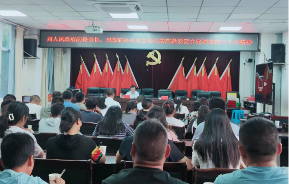 马庆辉以“认真学习宣传贯彻党的二十大精神”为主题,为基层干部群众讲授专题党课,要求要深入学习、深刻领会、准确把握党的二十大精神,进一步增强全面建设社会主义现代化的责任感和使命感,全力巩固拓展脱贫攻坚成果,全面推进乡村振兴战略,精准发力建设宜居宜业和美发窝,进一步发挥党建引领助推乡村振兴战略作用。发窝乡党员干部、发窝村全体村干部和村民代表参加主题党课。