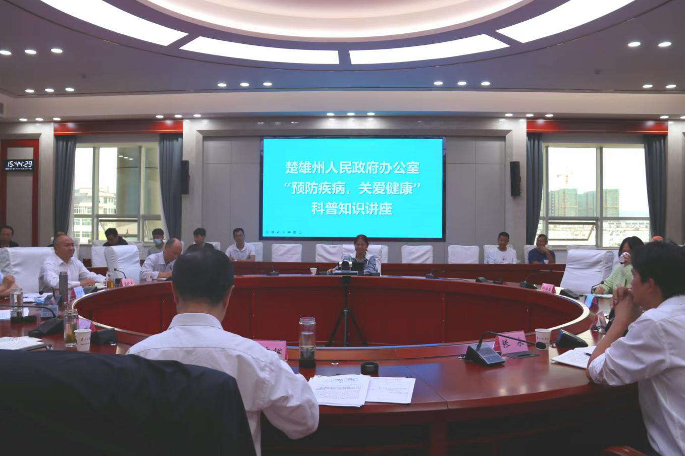 党的二十大报告指出:“人民健康是民族昌盛和国家强盛的重要标志。把保障人民健康放在优先发展的战略位置,完善人民健康促进政策。”为认真贯彻落实党的二十大精神,进一步增强州政府办公室全体干部职工健康意识,倡导科学、文明、健康的生活方式,切实保障广大干部职工身心健康,2023年6月12日下午,州人民政府办公室开展“预防疾病 关爱健康”科普知识讲座。