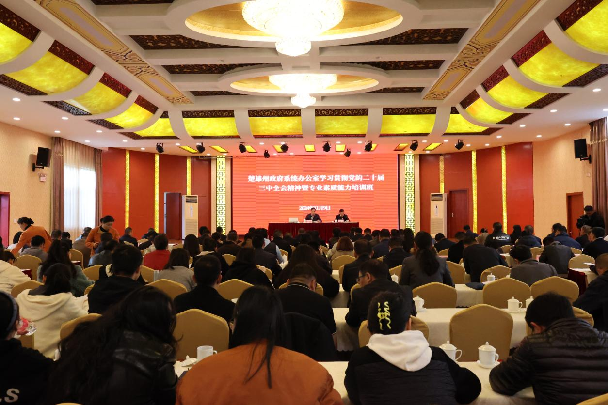 州政府办公室、州政府研究室全体干部职工,州政府驻昆明办事处领导,州直部门办公室主任(综合科科长),州属企业办公室主任,10县市人民政府办公室主任,楚雄高新区管委会党政办公室主任参加了培训。