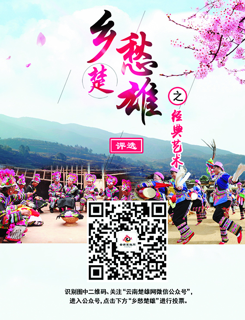 自2018年10月26日起,由州委宣传部主办,楚雄日报社、州广播电视台、云南楚雄网承办,10县市委宣传部协办的“乡愁楚雄”评选活动正式启动。目前,“乡愁楚雄——十大美丽风光”“乡愁楚雄——十大美味美食”“乡愁楚雄——十大美丽村庄”“乡愁楚雄——十大知名特产”“乡愁楚雄——十大特色节庆”网络票选活动已经结束,“乡愁楚雄——十大经典艺术名录”网络票选即将拉开帷幕。届时,将通过网络票选从20个经典艺术名录中评选出“乡愁楚雄——十大经典艺术名录”。