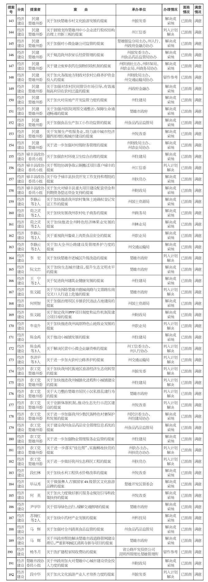 政协楚雄州第九届委员会第六次会议提案办理情况(二)