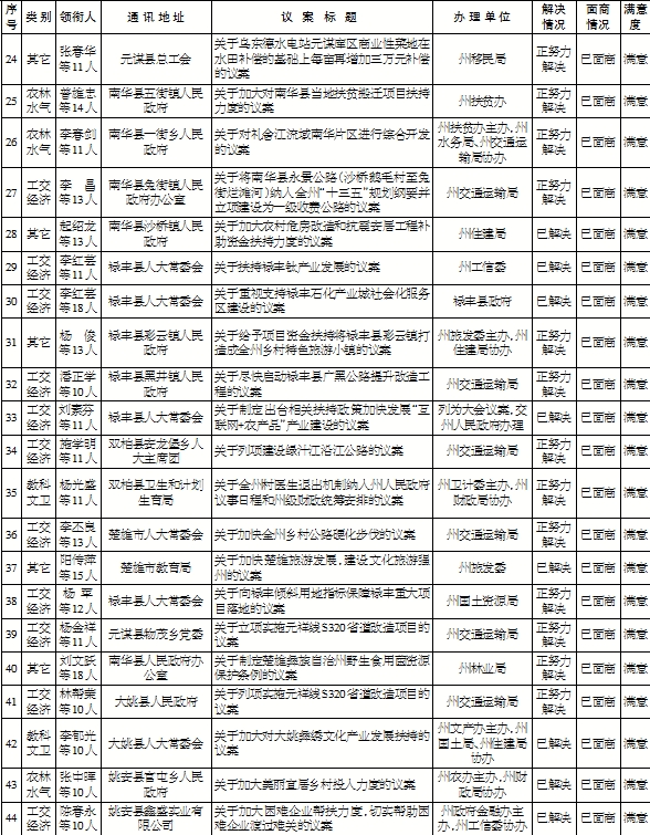 楚雄彝族自治州第十一届人民代表大会第六次会议代表提出的议案办理情况
