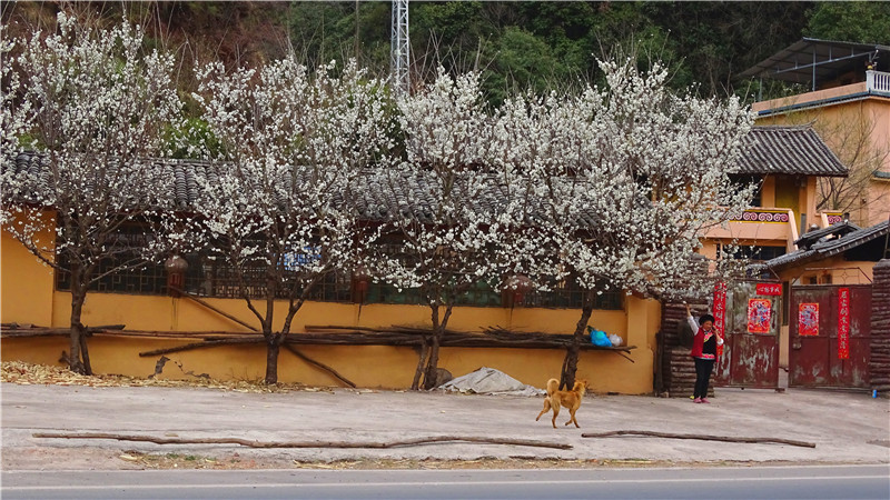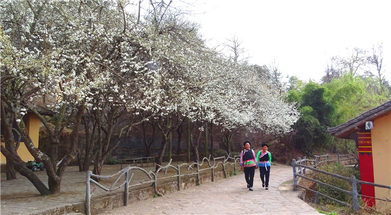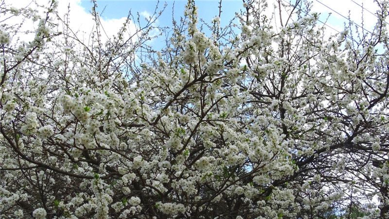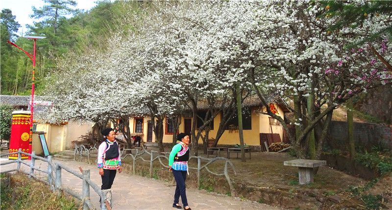 白色花海与秀丽的山村相映成趣,构成一幅美丽的画卷。行走在村落间的小道上,风吹过,一树落英缤纷,淋一场花雨,倒成了最诗意浪漫的事。