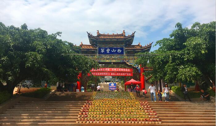 西山公园又名楚雄峨碌公园,位于楚雄鹿城西部,1974年2月经楚雄州党委批准,在楚雄西山兴建“西山人民公园”,1975年以来,党和人民政府不断拨款扩建,现已经初具规模。1982年被定为州级自然保护区,1985年更名为称峨碌公园。2008年2月3日,政府有关部门对全体市民免费开放。峨碌公园海拔1772——1947M,总面积3304亩,森林覆盖率达85%,森林面积大2700亩,植被是针叶林为主的混合林。整个公园南起灵秀湖,北指三家塘大渡槽,东起运河,西至白沙冲。南北大约6公里,东西宽1公里。主要的自然景观:西山古树、针叶林阔叶林植被、茶园。主要的人文景观:兴隆寺、七殿寺、西灵宫、果成苑、荷花楼水榭、荷花池、古山亭、动物园、观景台等。