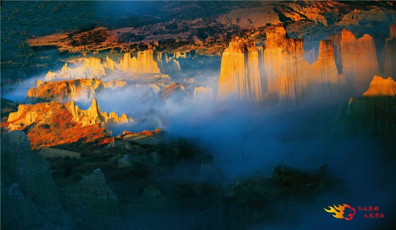 班果土林风景区——位于元谋县城西部,地理坐标东经101°46′—101°47′,北纬25°43′—25°46′,距元谋县城12公里,海拔1100米,面积14平方公里。班果土林中间有一条宽阔的大沙河,河两旁分布着一条条横向延伸的支流冲沟,每条冲沟都似迷宫,如高大的胄甲武士 ,一排排如两军对峙,又似夹道欢迎远方来客光临这沉睡千年的大漠世界。走进窄小的冲沟,里面却是宽敞的“跑马场”、“练兵场”,沿四周陡峭的坡坎边缘,土柱峰林密密匝匝,形态万千,酷似规模宏大的古建筑群,犹如东南亚的座座佛塔,欧洲哥德式的古城堡,古埃及的狮身人面像,古罗马的大教堂,西藏的布达拉宫,故宫的盘龙柱,数不胜数,目不暇接,任尔充分发挥丰富的想象。而镶钦在上面的雨花石、云母、硅化木,如“玛瑙”、“宝石”,金银般在阳光下闪闪发光,呈现出五光十色的异彩,集古今中外的雕塑、建筑造型艺术,神话般地展现在一条条“艺术走廊”之中。在距班果土林南部不远处,有华竹大己堡土林,则是另一番景致,这里的土林全部是白色的,远看如岷山千里雪,如云海,似雪原,茫茫一片。近看如宫殿、玉柱、仙鹤、骆驼、野象、菩萨等等,酷似牙雕玉琢而成,色泽皑皑,令人眼花缭乱。土林中间点缀着灌木林和草坪,四季常绿,山花点点。