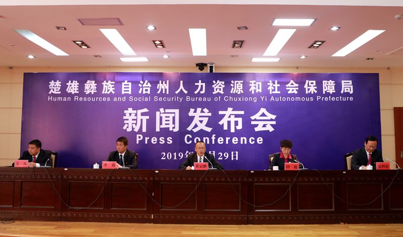 10月29日,楚雄州人力资源和社会保障局在州政务中心新闻发布厅举行2019年前三季度就业创业工作新闻发布会。