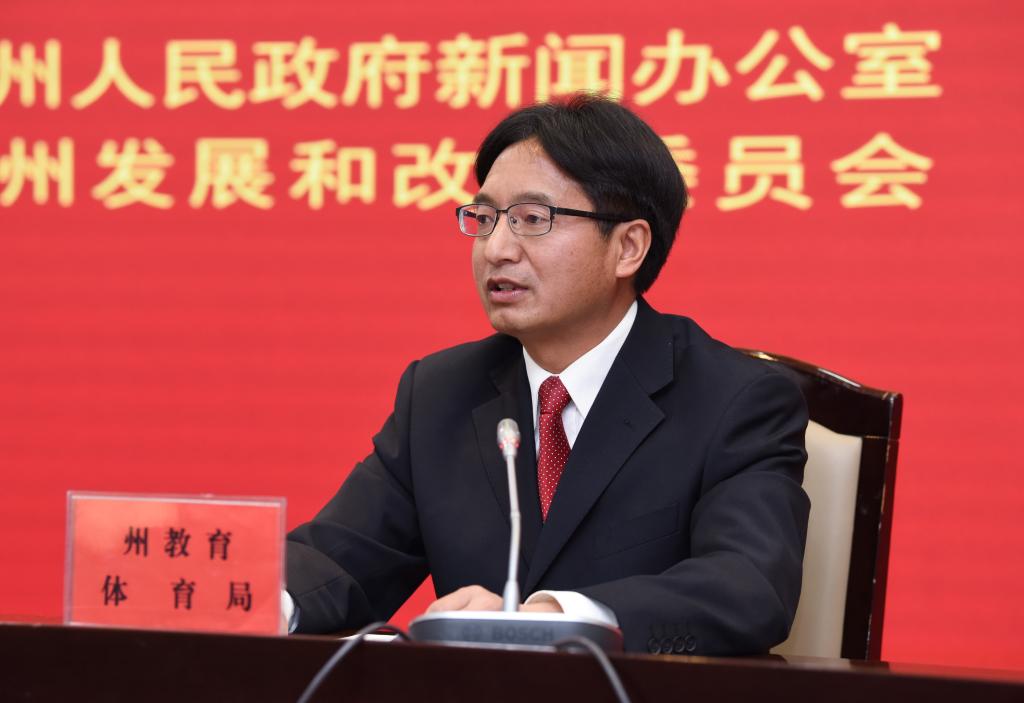 州教育体育局副局长许华荣答记者问。记者 高建波 摄