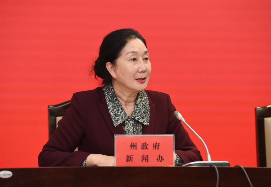 中共楚雄州委宣传部二级调研员孟孚主持新闻发布会。记者 高建波 摄