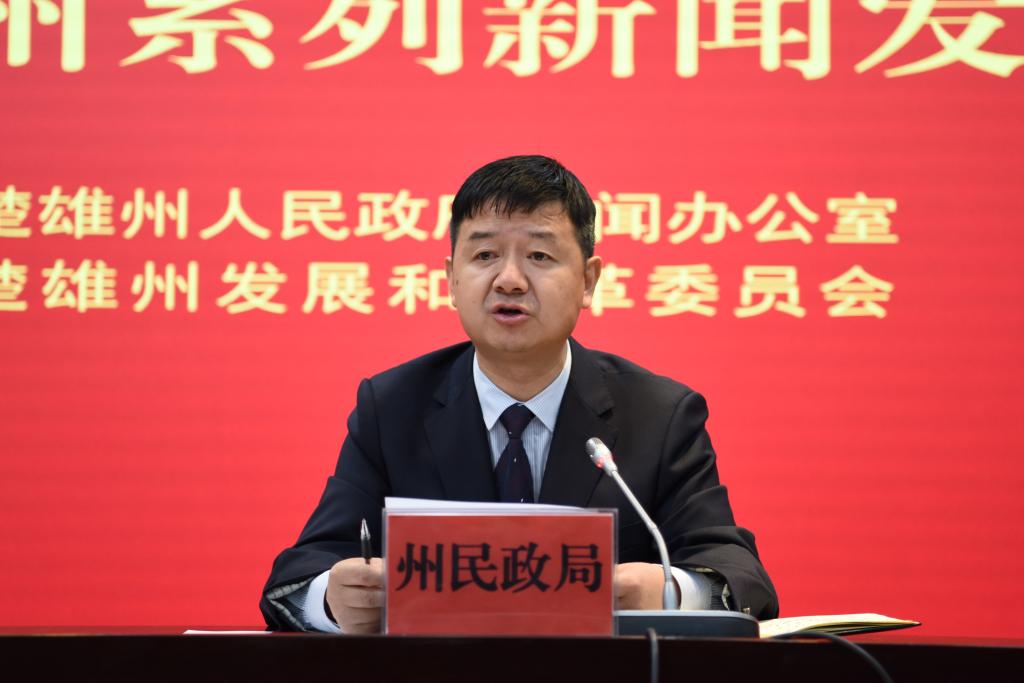楚雄州民政局党组书记、局长代淳志发布新闻。记者 夏天彧 摄