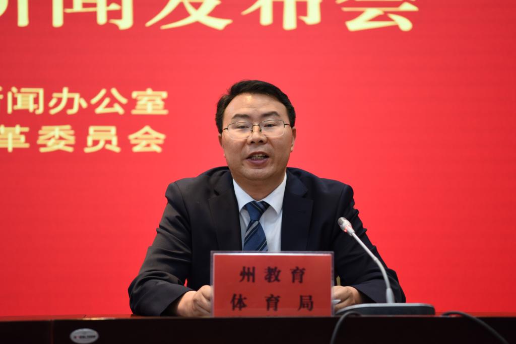 谢谢记者朋友的提问!“十三五”期间,在州委、州人民政府坚强领导下,在州级有关部门、各县市和社会各界支持下,全州教育系统坚定不移地实施教育优先发展战略,按照固根基、扬优势、补短板、强弱项的思路,全面加强教育体育工作,全州提前实现了学前教育和高中阶段的基本普及目标,义务教育从基本均衡向优质均衡迈进,学生资助体系更加科学完善,教育信息化实现了2.0版的升级换代,全民健身运动广泛开展,人民群众对教育体育的获得感和幸福感进一步增强。