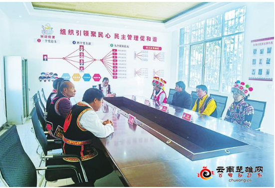 1月26日上午9点,在村委会的民族议事厅里,村里居住的彝、汉、白、傈僳、傣等9个民族代表聚齐一堂,准备议一议村里环境卫生责任区划分的有关事情。“现在村中道路、公共场所很干净了,但一些死角区域还存在不干净情况,要拿出办法治理。”“要搞好门前‘三包’,做好垃圾入池,家禽圈养。”一个多小时的时间,大家充分发表意见建议,协商后举手表决,拿出了管理办法。