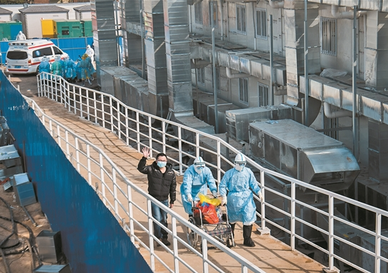 经过军队支援湖北医疗队扎实细致、紧张有序的准备工作,武汉火神山新型冠状病毒感染肺炎专科医院开始正式接诊新型冠状病毒感染的肺炎确诊患者。4日9时30分,在军队医护人员的陪护下,由武汉市定点收治医院转诊而来的部分患者缓缓走进病房,一些身体虚弱的患者则或乘坐轮椅或躺在病床上被推进病区。
