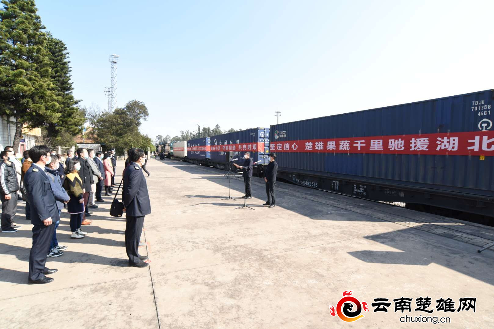 “呜……”2月20日下午4时30分,州委、州政府安排专项资金采购捐赠湖北省咸宁市的210吨蔬菜等农产品,从楚雄西火车站发车。40个小时后,这批农产品将抵达咸宁火车站,保障咸宁市场供应,助力打赢疫情防控阻击战。