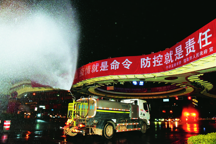 为确保打赢疫情防控阻击战,2月6日晚8时至7日凌晨2时,楚雄市按照省、州全面开展“大清扫、大消毒”爱国卫生运动的部署,组织环卫车辆及人员对城区(含开发区)所有道路、街面、桥梁、市场、公园、广场等进行全域喷洒消毒。