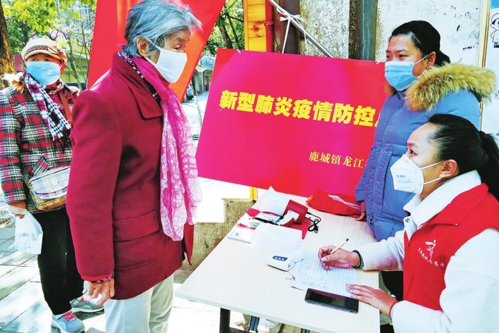 龙江社区防控点工作人员对社区居民、流动人员开展个人信息登记。 (记者 夏天彧摄)