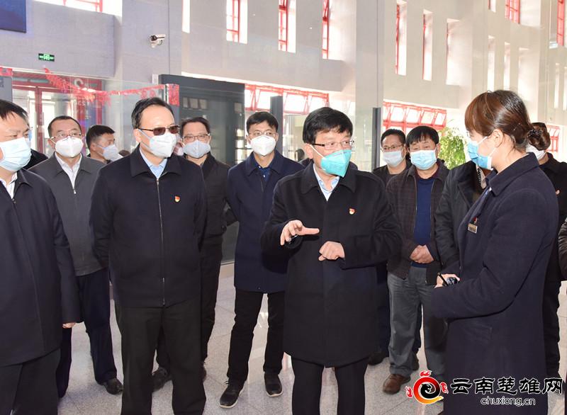 州委书记杨斌,州委副书记、州长迟中华率队在楚雄州卫生健康委实地检查疫情防控工作。(记者王洪摄)