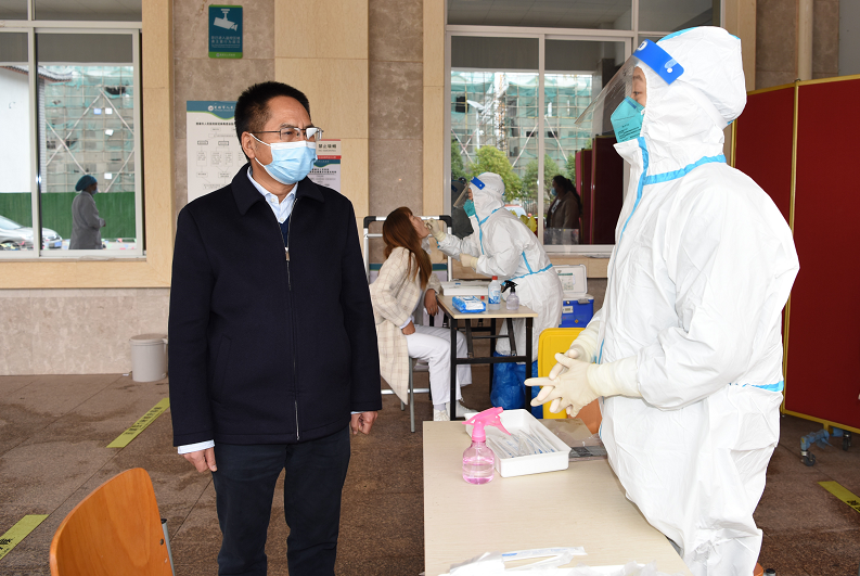 州委副书记、州长张文旺在楚雄市人民医院检查新冠肺炎疫情防控核酸检测工作。