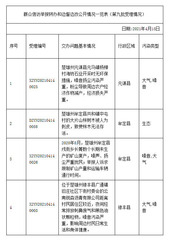 上一篇:楚雄州办理中央生态环境保护督察交办群众举报投诉生态环境问题进展情况通报(九)